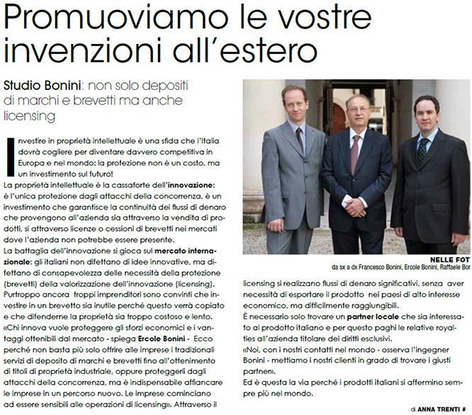 Il Giornale di Vicenza [Idea Impresa] – 9 maggio 2015 | Promuoviamo le vostre invenzioni all’estero