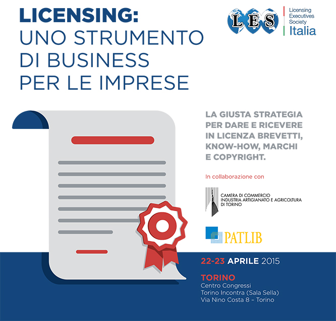 MERCOLEDI’ 22 E GIOVEDI’ 23 APRILE presso il Centro Congressi Torino Incontra (Sala Sella) in via Nino Costa 8 – Torino, in collaborazione con la Camera di commercio Industria Artigianato e Agricoltura di Torin, LES Italia organizza corsi di licensing con l’obiettivo di fornire gli strumenti essenziali per operare scelte strategiche, negoziare contratti e gestire al meglio i rapporti di licenza.